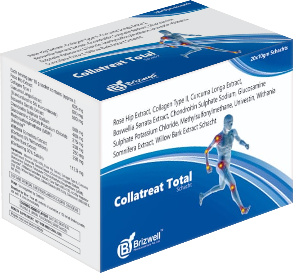 UnivestinTM 250 mg + Collagen Type II 500 mg + Rose Hip Extract 625 mg + Curcuma Longa Extract 500 mg + Boswellia Serrata Extract 500 mg + Chondroitin Sulphate Sodium 400 mg + Glucosamine Sulphate Potassium Chloride 375 mg + Methylsulfonylmethane (MSM) 250 mg + Withania Somnifera Extract 250 mg + Willow Bark Extract 112.5 mg SACHET